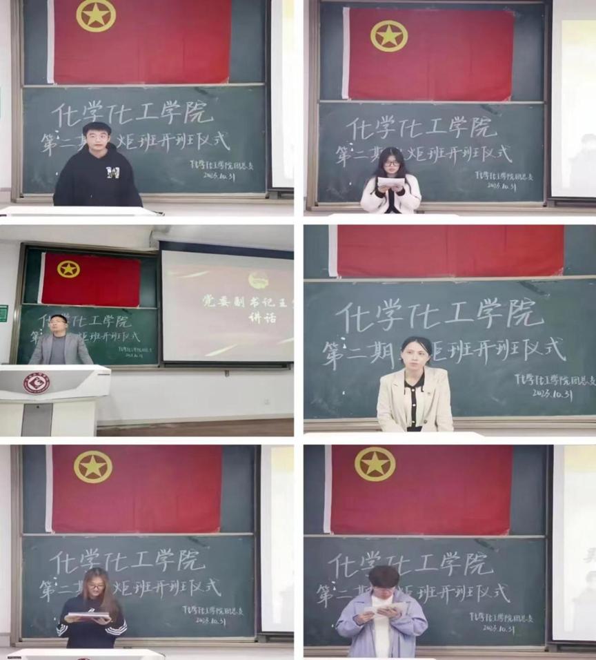 化学化工学院于10月31日晚在博文楼副楼303举行第二期火炬班开班仪式。我院党委副书记王宏江、团总支书记许小莉、团总支副书记胡博文、团总支组织部及第二期火炬班全体成员参与本次仪式。本次仪式由胡博文主持。