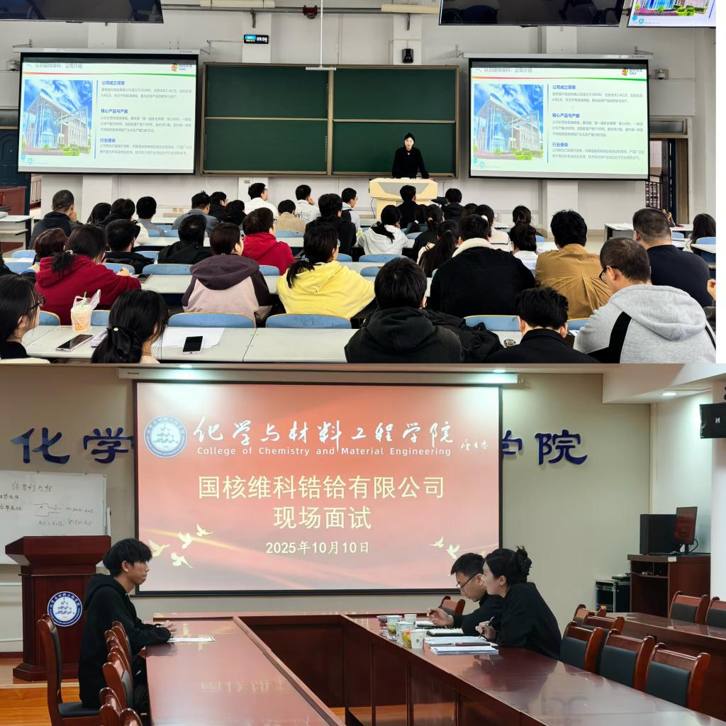 10月10日,化学与材料工程学院邀请国核维科锆铪有限公司在思贤楼222教室举办专场招聘会,学院2026届毕业生近90名参加,学院党委副书记张力主持会议。