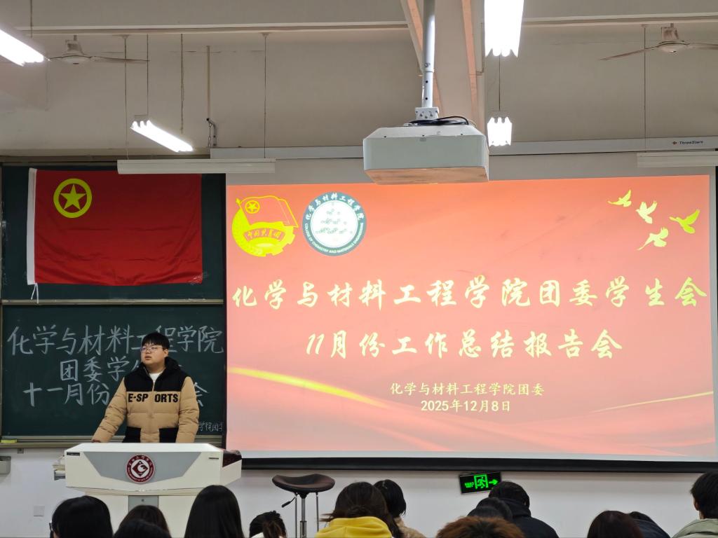 为全面总结11月份工作成效、问题不足,进一步优化工作机制、提升服务质效,12月8日,化学与材料工程学院团委学生会于博文楼副楼305召开11月份工作总结报告会。2026届全体团学干部参会,会议由团委副书记张以水主持。